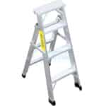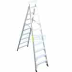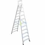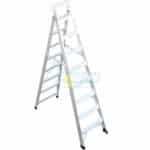 The double sided design provides high level of productivity and stability with the use of heavy duty spreader. It is designed to withstand a rough weather and to provide maximum traction with textured shape rubber shoes. And, the use of extension lock is to hold greater safety when transforming into long straight height.